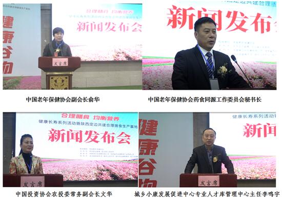 出席本次新闻发布会的中国老年保健协会领导和嘉宾受到了定边县人民群众的热烈欢迎。本次新闻发布会由定边县人民政府副县长李明主持,县委常委统战部长曹鹏飞至欢迎词,新闻发布会上中国老年保健协会副会长俞华做指导讲话并为陕西省百谷健康源产业有限公司颁发共建合理膳食基地牌匾;中国老年保健协会副秘书长药食同源工作委员主任委员杨建利为陕西省百谷健康源产业有限公司董事长李新梅、总经理姚润、副总经理刘兴贵颁发委员证书;中国投资协会农投委常务副会长文华发表了《资本如何助力乡村振兴》的主题演讲;城乡小康发展促进中心专业人才库管理中心主任李鸣宇发表了《人才培养是发展的奠基石》的主题演讲;陕西省百谷健康源产业有限公司与有关行政村签订土地流转战略合作协议、并向10老人捐赠了物资。