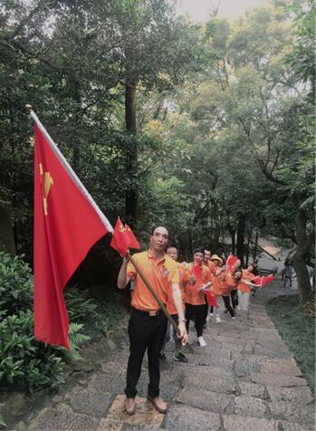 仰望着鼓山顶,全体人员激情澎湃,高唱“唱支山歌给党听,我把党来比母亲”中心成员张金霞同志,热情耐心组织着全体救援队伍,沿着红色古道,以响亮的歌声鼓励大家前进。